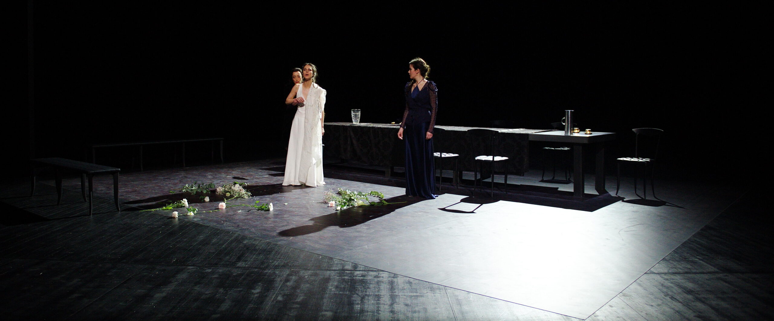 Pourtant le sujet est bien noir : c’est celui d’un mariage forcé permettant l’alliance entre les Parthes et les Arméniens. Des larmes donc, mais aussi des déclarations d’amour, des haines, des bassesses, des mensonges, et puis la mort qui rôde partout.