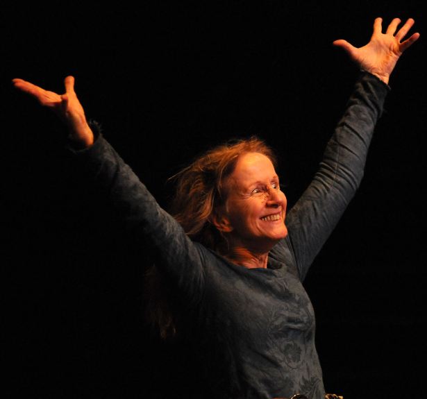 Que dire alors de cette représentation ? Le fil de l’intrigue se déroule avec une certaine rapidité : sur la scène, les personnages courent, écoutent, se suivent et se cherchent. Il faut suivre l’histoire : celle du jeune Calixte, amoureux de la belle Mélibée, et qui a recours à Célestine pour atteindre le cœur de la jeune fille. Autour d’eux, des valets, des filles, des servantes, les parents de Mélibée. Mais la Célestine, voilà bien tout le nœud de la pièce : vieille femme, faiseuse de pucelages, maquerelle, sorcière, entremetteuse (on la voit à l’œuvre dans ces trois derniers domaines au cours de la pièce) ; vieille pleine d’énergie et de malice, rusée, cupide, courant d’un bout à l’autre de cette longue scène, dansant, crachant, buvant. Un concentré d’humanité paillarde que Catherine Vincent fait vivre avec bonheur : avec trop d’énergie ? Il est quelques pauses qui ménagent au personnage une certaine perspective vers le monde du regret.